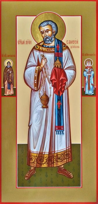 Образ Священномученика Елисея (Штольдера), диакона, новомученика с предстоящими образами на полях.