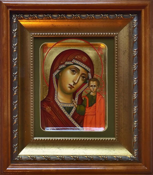 Киот деревянный с багетной рамой "под золото", для иконы формата 13х16см.