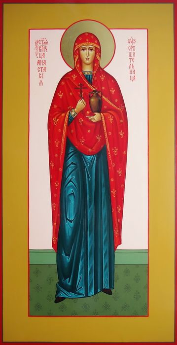 Святая великомученица Анастасия, родом римлянка, пострадала за Христа в гонение при Диоклетиане. Отец ее был язычником, мать – тайной христианкой. Учителем святой Анастасии в юности был благочестивый и образованный христианин Хрисогон. После смерти жены отец выдал святую Анастасию за язычника Помплия, но под предлогом вымышленной болезни она сохранила девство.