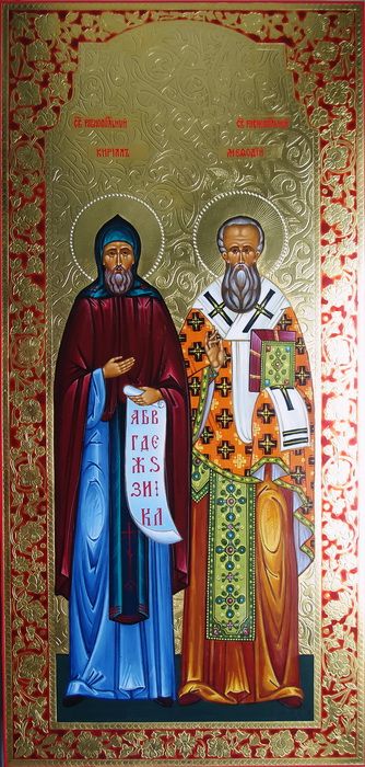 Образы Святых равноапостольных славянских просветителей. Кирилл и Мефодий, Рукописная мерная икона.