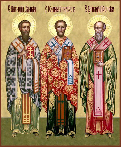 Образы трех Святителей: Святого Василия Великого, Святого Григория Богослова и Святого Иоанна Златоуста.