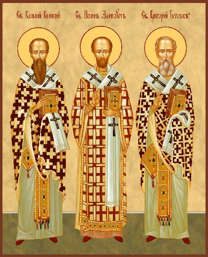 Образы трех Святителей: Святого Василия Великого, Святого Григория Богослова и Святого Иоанна Златоуста.