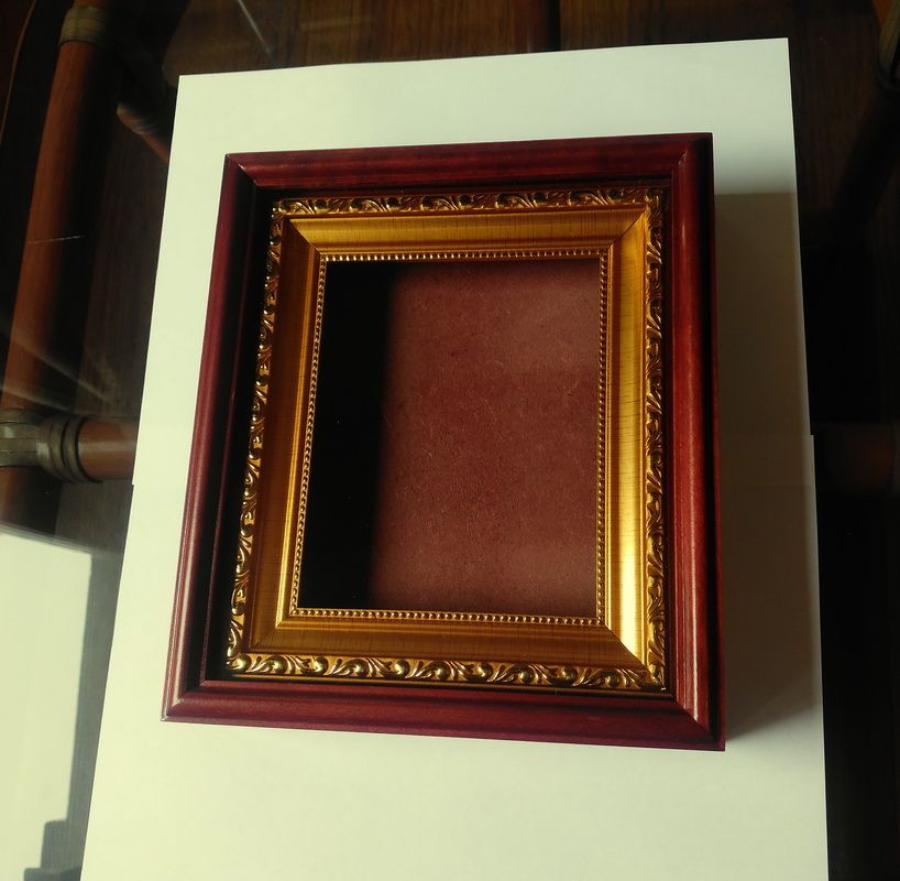 Киот деревянный с багетной рамой "под золото" для иконы формата 13х16см.