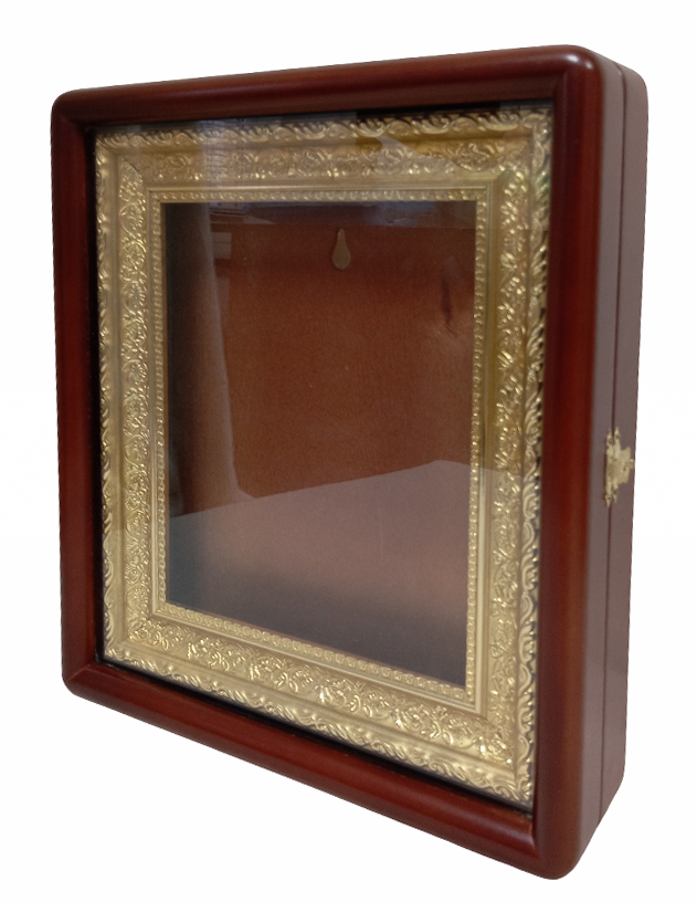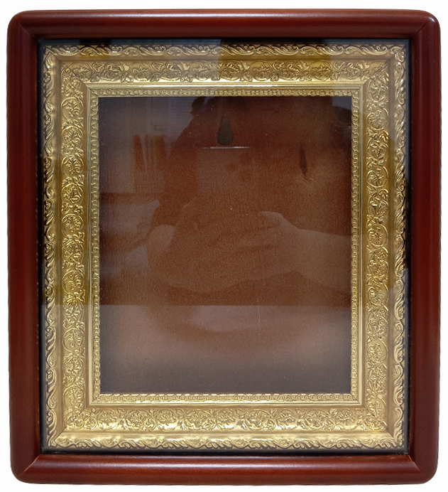 Киот деревянный с багетной рамой "под золото" для иконы формата 17,5 х21 см.