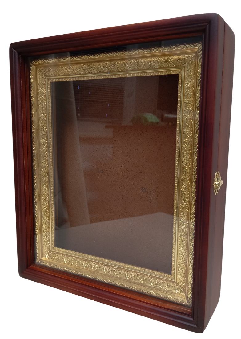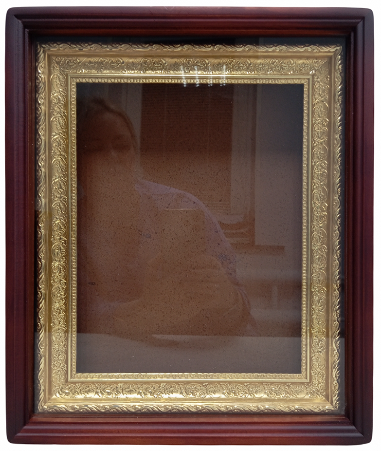 Киот деревянный с багетной рамой "под золото" для иконы формата 22 х 28см.